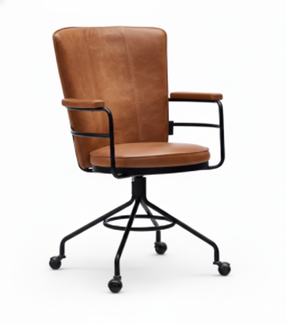 Una silla de dirección que combina líneas modernas con la calidez del cuero. Creada para largas jornadas, su ajuste ergonómico y su estética inigualable la hacen esencial para cualquier espacio ejecutivo.